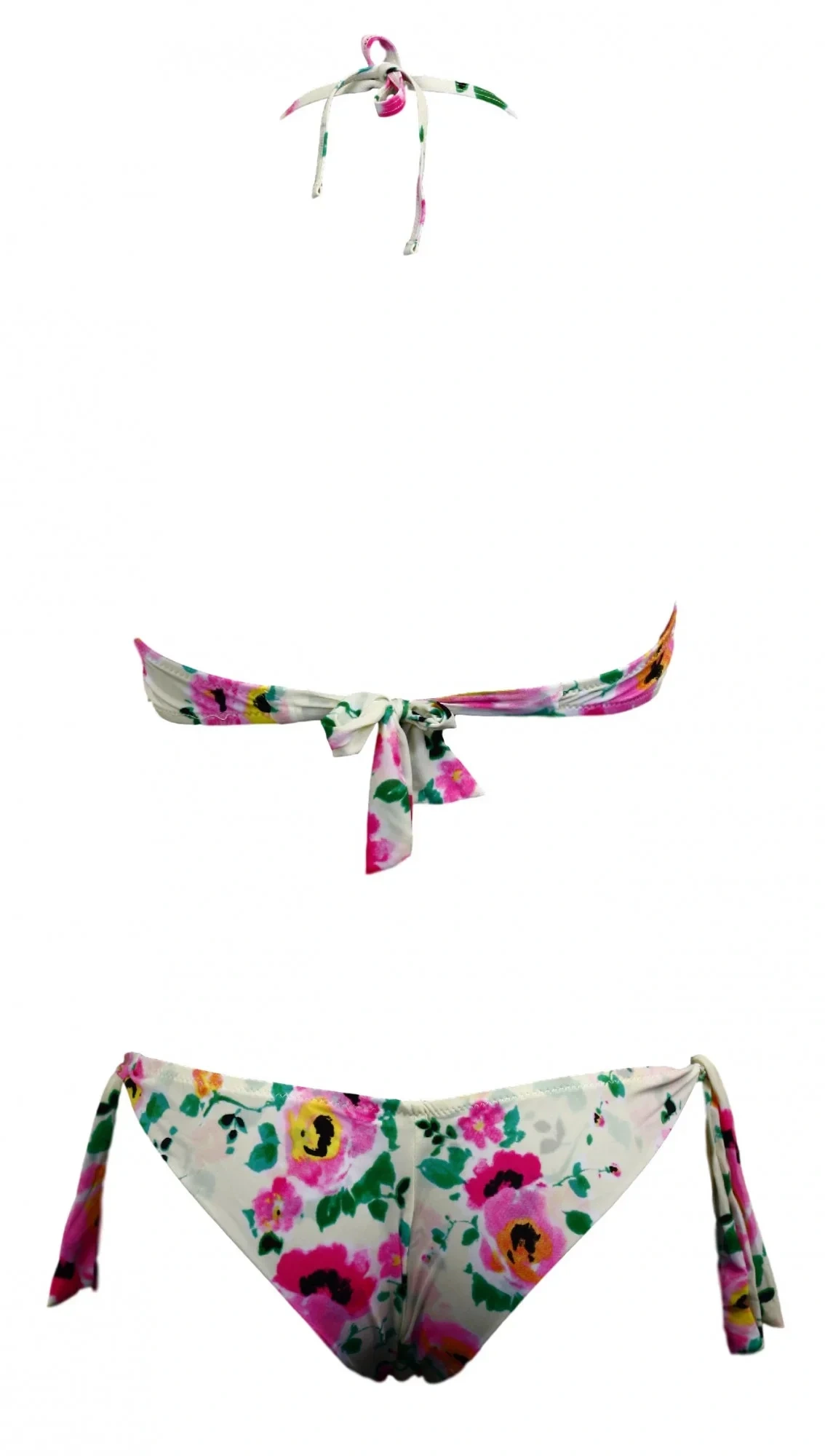 Klasický spodní díl bikin s krásným květinovým motivem. Zavazování na bocích. Elastan 15 % Polyami