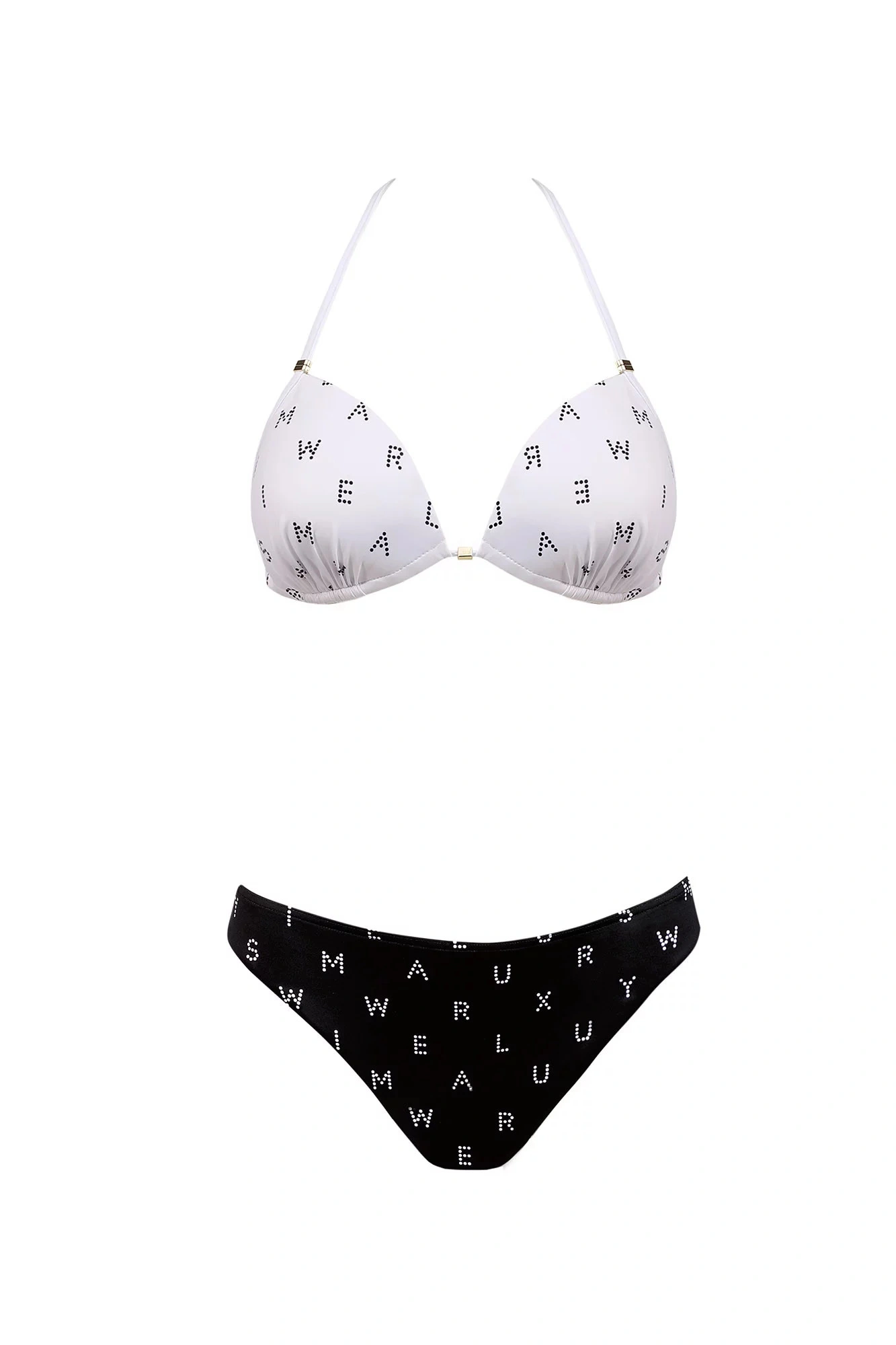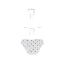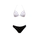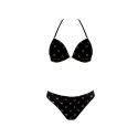 Dvoudílné dámské plavky, vrchní díl mírně vyztužený, bez kostice, spodní část podprsenky na posouvání. Vzadu na zavazování za krem a na zádech.
