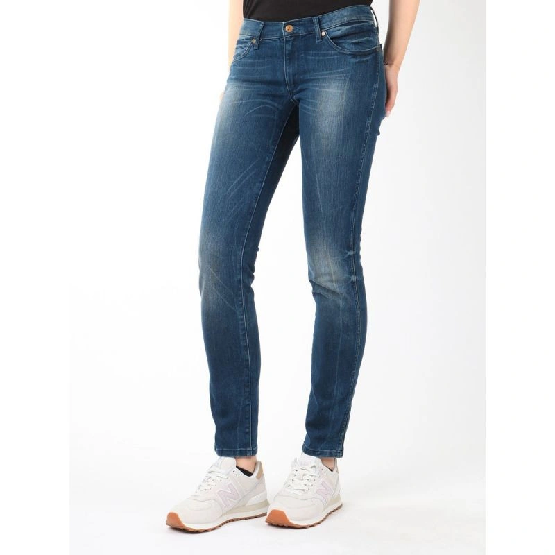 Dámské džíny se zúženými nohavicemi. Vlastnosti: Přední a zadní kapsy. Kožená vsadka s logem Wrangl