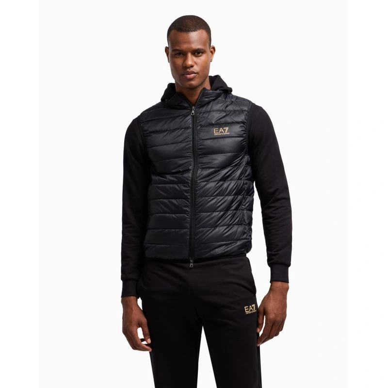 - Vesta je vyplněna přírodním peřím a prachovým peřím, takže poskytuje optimální tepelnou izolaci, účinně chrání před nízkými teplotami a zároveň zůstává lehká a prodyšná. Vysoký límec navíc chrání krk před větrem a mrazem, takže je ideální volbou pro zimní dny. Moderní design vesty, podtržený decentním logem EA7 na přední straně, které jí dodává luxusní nádech, z ní dělá nejen praktickou, ale také mimořádně stylovou.