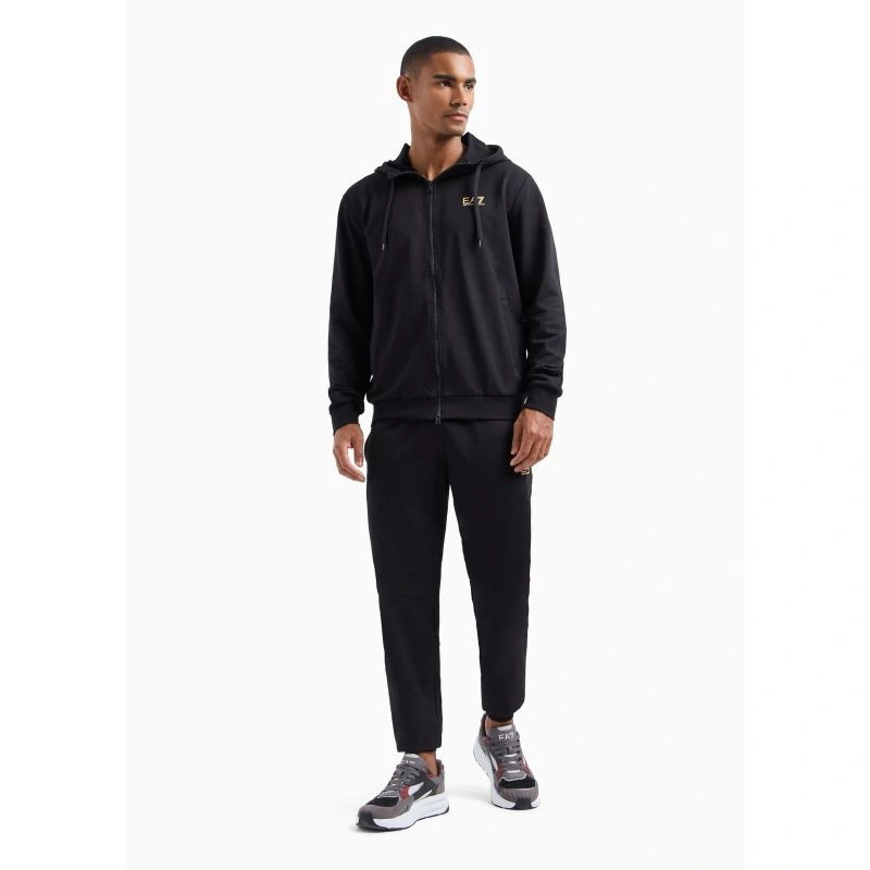 Pánská tepláková souprava EA7 Emporio Armani je jedinečnou kombinací elegance a funkčnosti, která je určena pro muže, kteří si cení pohodlí i módního vzhledu. Pravidelný střih se dokonale přizpůsobí siluetě a zajistí pohodlné každodenní nošení. Soupravu tvoří otevřená mikina s kapucí a dlouhé tepláky, které vytvářejí ucelený moderní vzhled, ideální pro různé příležitosti, od sportovních aktivit až po každodenní relaxaci.