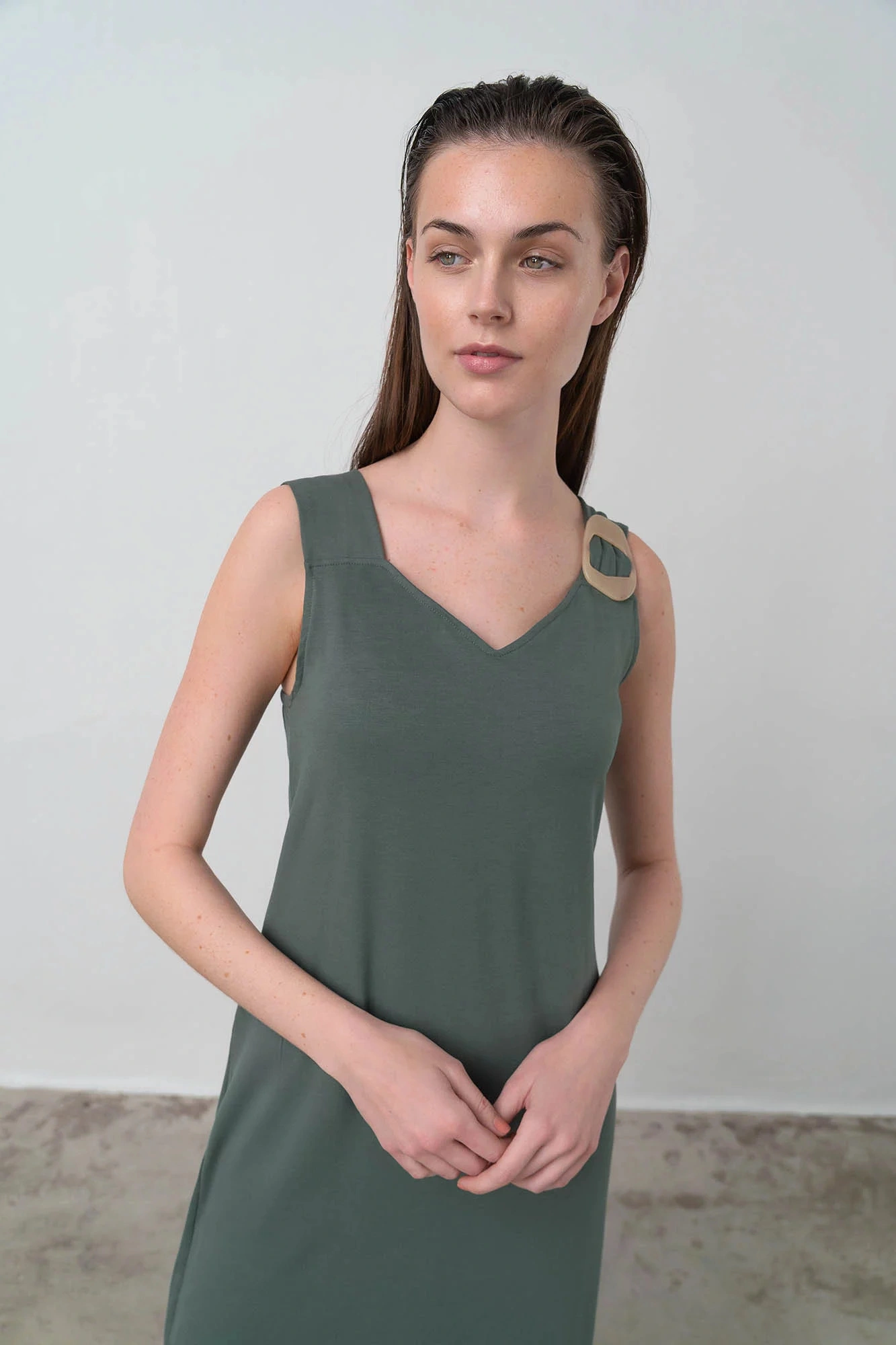 Elegantní dámské šaty na ramínka s výstřihem do V, vše co žena v parných letních dnech potřebuje. Šaty jsou vyrobené z kvalitní viskózy s příměsí elastanu. Viscoza se vyznačuje vysokou savostí, je dobře prodyšná, měkká a příjemná na dotek a elastan zaručuje lepší pružnost tkaniny.