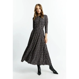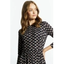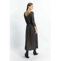 Elegantní dámské šaty z látky příjemné na dotek. Šaty s 3/4 rukávy, půlkulatým výstřihem a páskem v pase. Šaty jsou na zádech zdobené průstřihem. Tento model se jistě hodí pro zvláštní příležitosti. Modelka na obrázku je 177 cm vysoká a má velikost 36.