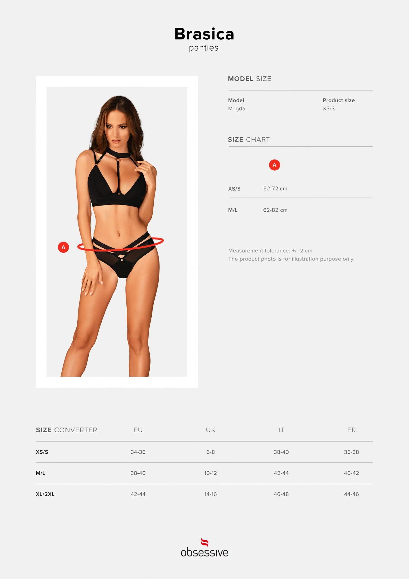 Elegantní a mimořádně svůdné kalhotky s křížícími se silnými pruhy, které přitahují zvláštní pozornost! Průsvitná síťovina je hravým detailem a bižuterní přívěsek je tak poutavý! Nemáte šanci, že vás někdo přehlédne!