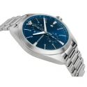 Kształt koperty to majstersztyk prostoty i mocy. Okrągła, klasyczna forma została zaprojektowana tak, aby podkreślać potęgę tego modelu. To nie jest zegarek, który chowa się w cieniu – to czasomierz, który dominuje swoim wyglądem, wyróżniając się na każdym nadgarstku.Ale prawdziwy magnes dla męskich zmysłów to tarcza – głęboki, niebieski odcień, który w zależności od kąta światła przybiera różne odcienie – od stalowego błękitu po ciemną, niemal granatową głębię. Ta kolorystyka działa na wyobraźnię, przypominając o mocy i pewności siebie, które musisz mieć, nosząc ten zegarek.Srebrne akcenty w postaci indeksów i wskazówek subtelnie przebijają się przez niebieskie tło, dodając elegancji i precyzji. Chronografy dodają dynamicznego charakteru, a tachymetr na obrzeżu tarczy podkreśla, że to zegarek dla mężczyzny, który ceni sobie zarówno styl, jak i funkcjonalność.