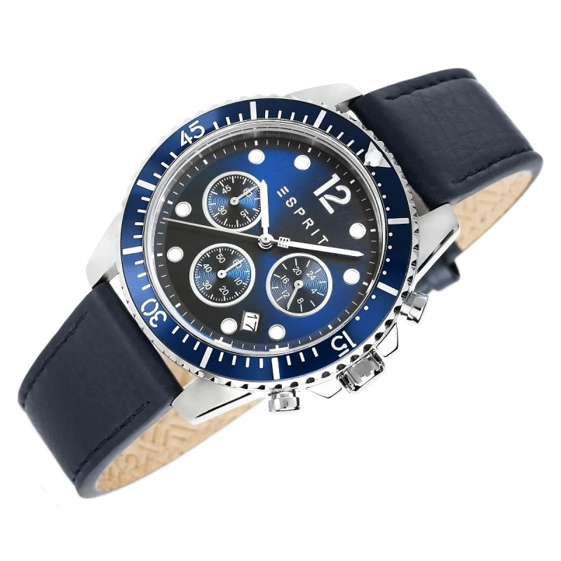 Ciferník těchto hodinek Esprit zaujme intenzivním tmavě modrým odstínem, který se jemně třpytí v závislosti na úhlu dopadu světla. Hluboká saténová textura dodává hodinkám eleganci, zatímco stříbrné detaily, jako jsou indexy, ručičky a subciferníčky, jim dodávají výrazný a moderní nádech. Tmavě modrý ciferník se stříbrnými značkami podtrhuje sportovní styl, díky čemuž se hodinky skvěle hodí jak pro každodenní, tak pro dynamičtější vzhled.