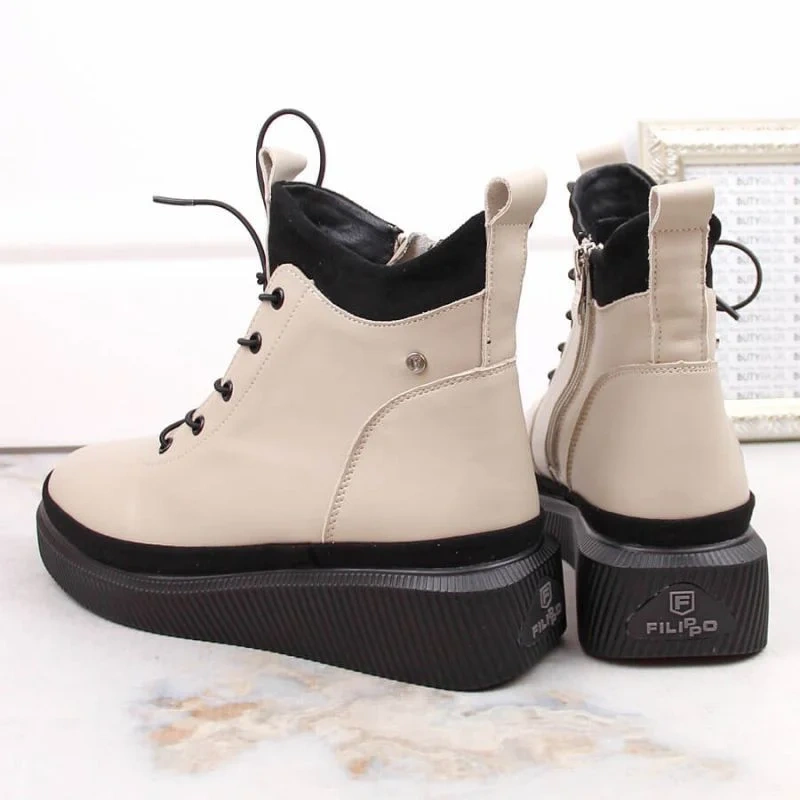 Filippo W PAW482 béžové zateplené kožené boty na platformě