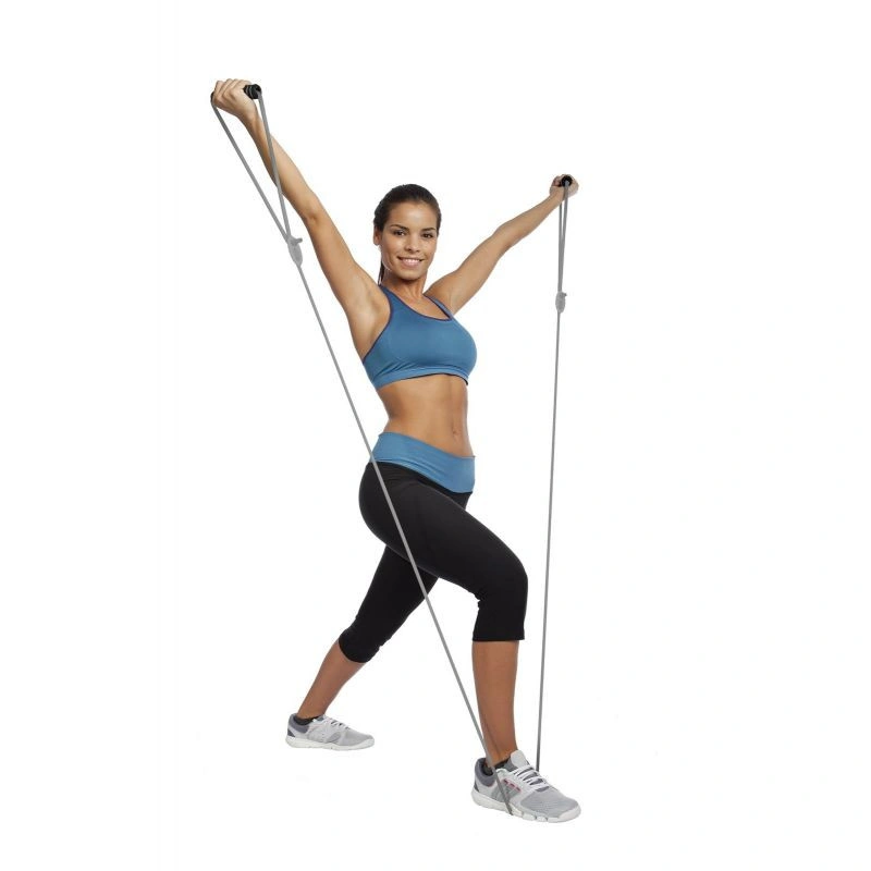 Nepostradatelná pomůcka pro protahovací cviky na svaly paží, hrudníku, břicha, zad a pánve. Nastavitelná délka elastické gumy umožňuje lepší nastavení stupně obtížnosti, čímž je trénink efektivnější a pohodlnější.