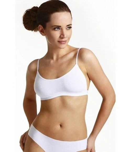 Nevyztužená podprsenka z bavlny, bez kostic a s pohodlnými nastavitelnými ramínky. Jemná přírodní ba