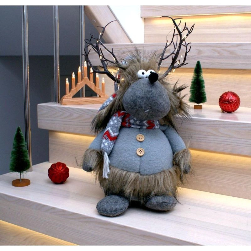 Vánoční sob je přítelem Santy, který se bude ve vašem domově rád zabydlovat. Díky stabilnímu podstavci ho můžete umístit na jakoukoli skříň, do obývacího pokoje k vánočnímu stromku, na krb, do dětského pokoje nebo do ložnice. Sob má krásnou zimní čepici, šálu a hřejivý kožešinový lem. Po zapnutí LED světel se navíc jeho parohy rozsvítí a šíří kolem sebe jasnou teplou barvu. Určitě díky němu pocítíte nejen kouzlo Vánoc, ale také zimní atmosféru. Sob se nejlépe cítí ve společnosti dalších přátel, jako jsou: skřítci nebo trpaslíci z vánoční řady Saska.