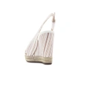 - Dodatečné zdobení zajišťuje zlatá přezka, která zároveň poskytuje možnost nastavení pásku na patě, a úprava kolem podrážky ve vzoru dvojitého zlatého opletu.