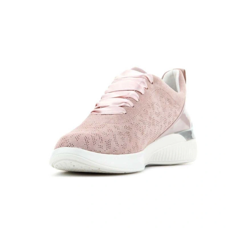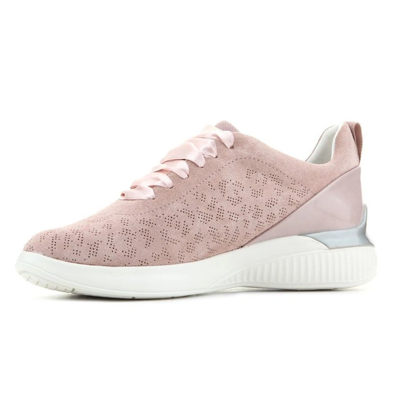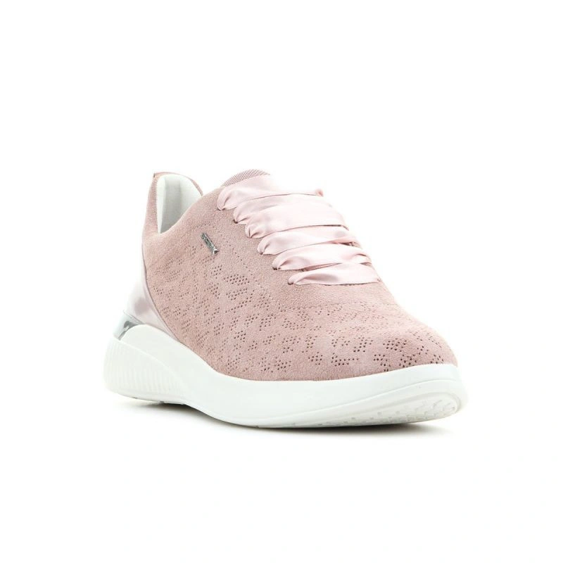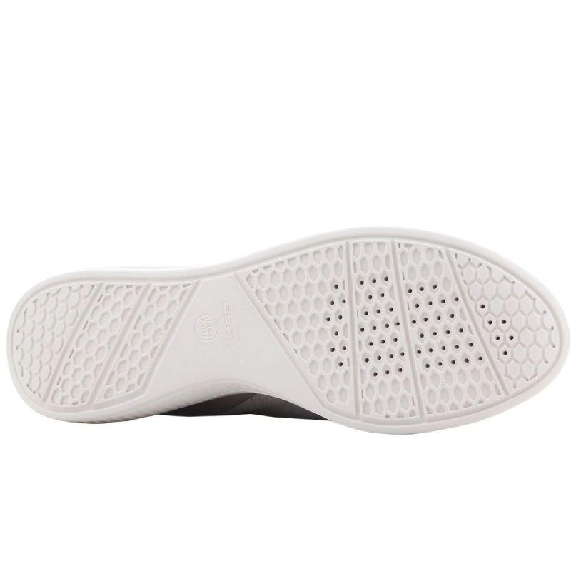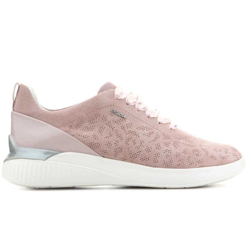 Dámská obuv pro sezónu jaro/léto. Semišový svršek má na patě syntetické zpevnění, které je zároveň originální úpravou tohoto modelu. Dodatečná přilnavost na patě. Odolná a přilnavá podrážka. Logo Geox na boku svršku. Geox Respira - perforovaná podrážka obuvi, která absorbuje a odvádí pot, aniž by propouštěla vodu do boty. Noha zůstává v suchu a má správnou teplotu.