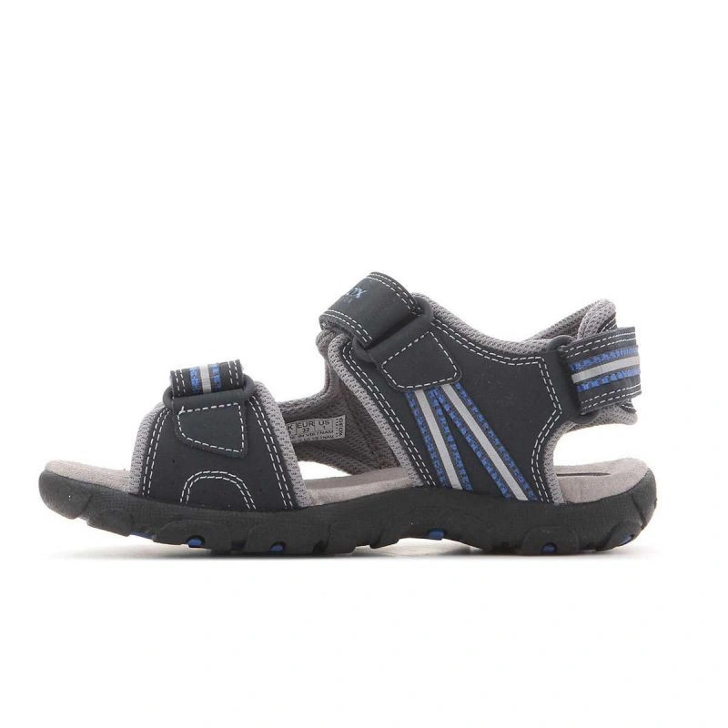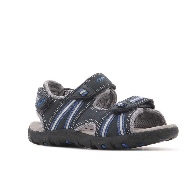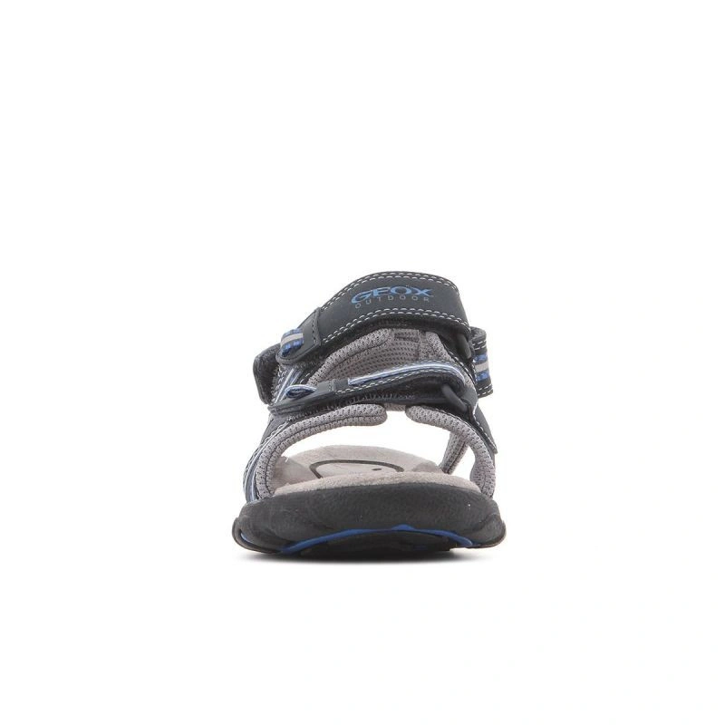 Prodyšné chlapecké sandály. Perforovaná podrážka - nezbytná součást obuvi Geox. Svršek s trojitým zapínáním na suchý zip pro snadné nazouvání a vyzouvání, nárazy tlumícím vzorkem a protiskluzovou podrážkou. Špičková technologie Geox Respira, která kombinuje perforovanou podrážku s prodyšnou a voděodolnou membránou, umožňuje přirozenou regulaci teploty a vytváří uvnitř boty mikroklima, které udržuje nohu v suchu po celý den.