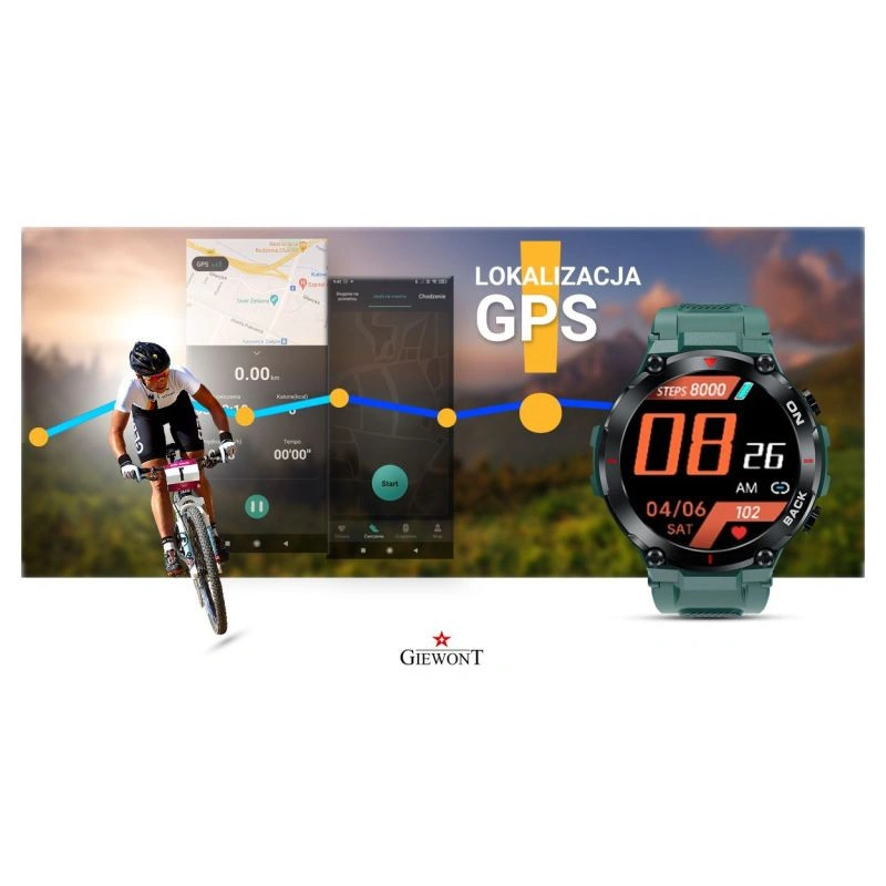 Chytré hodinky Giewont GW460 jsou první chytré hodinky z rodiny hodinek značky Giewont s funkcí určování polohy GPS.