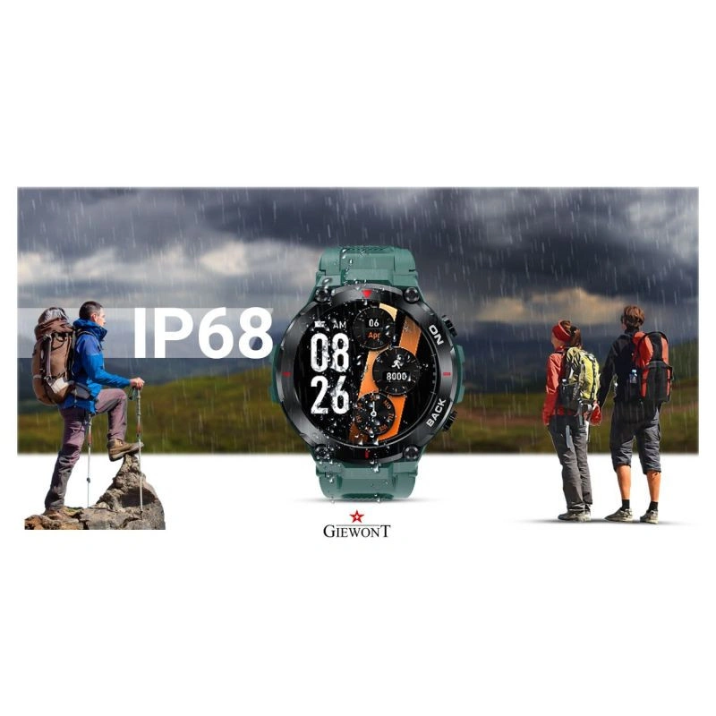Chytré hodinky Giewont GW460 jsou vodotěsné podle normy IP67, odolné proti náhodnému polití, postříkání a dešti, takže se o své chytré hodinky nemusíte bát, když prší.
