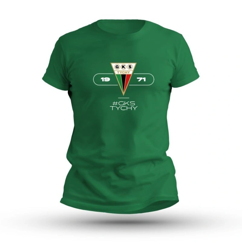 Koszulka GKS Tychy Man #1971 Poczuj sportowego ducha Tyskich! Koszulka z krótkim rękawem GKS Tychy Man #1971 to obowiązkowy element garderoby każdego fana klubu. Połączenie klasycznego stylu i wygody sprawia, że świetnie sprawdzi się zarówno na trybunach, jak i na co dzień. Główne cechy: Oficjalny design GKS Tychy: Na przodzie znajduje się charakterystyczne logo klubu z trójkolorowym herbem oraz datą założenia – 1971 a całość dopełnia napis #GKS TYCHY. Stylowy nadruk: Nowoczesne, minimalistyczne wykonanie z napisem #GKSTychy podkreśla przywiązanie do drużyny i tradycji. Komfort i jakość: Miękka, oddychająca tkanina (85% bawełna, 15% wiskoza) gwarantuje komfort noszenia na co dzień i podczas aktywności. Gramatura: 190 g/m² – lekka, a jednocześnie solidna konstrukcja zapewniająca trwałość. Uniwersalny krój: Klasyczny fason z krótkim rękawem doskonale dopasowuje się do sylwetki – idealny dla każdego kibica. Kolorystyka klubu: Zielona baza nawiązuje do barw GK