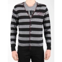 -Pánský svetr s dlouhými rukávy-Model se zapíná na knoflíky-Barva: černé a šedé pruhy-Materiál: 100% bavlna