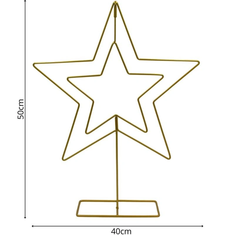 ZLATÝ KOVOVÝ KOSTÝM DECORATION STAR 50CM MICA je dekorace, která spojuje moderní design s klasickou elegancí. Vypadá perfektně na stole, komodě, polici nebo v kanceláři. Jeho zlatý odstín vnese do vašeho interiéru teplo, luxus a jedinečnou atmosféru - během svátků i po celý rok.