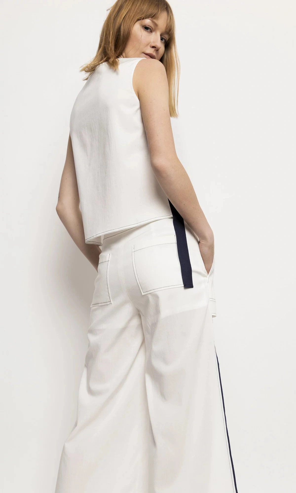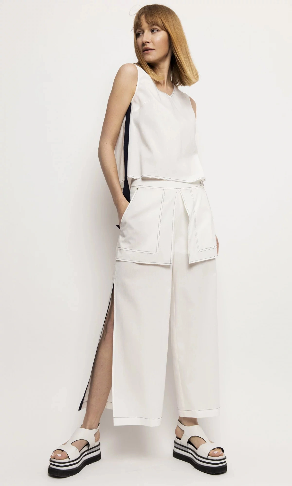 Jednoduchý top s ozdobným kontrastním páskem na bočním švu.98% Tencel 2% PolyesterPokyny pro péči: Pokyny pro praní: Ruční praní nebo profesionální chemické čištěníKolekce: Jaro/LétoBarva: BíláPohlaví: Ženské