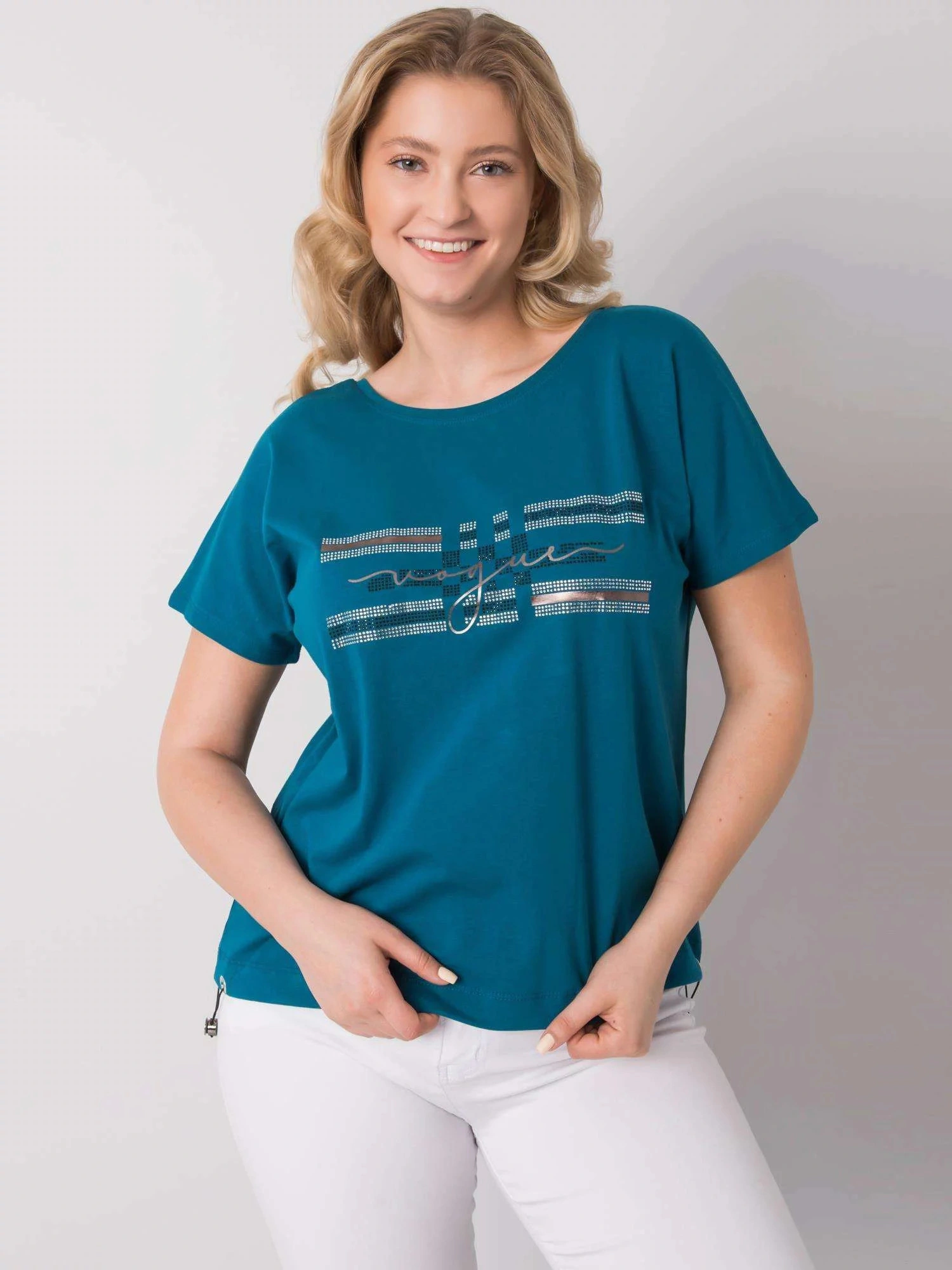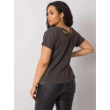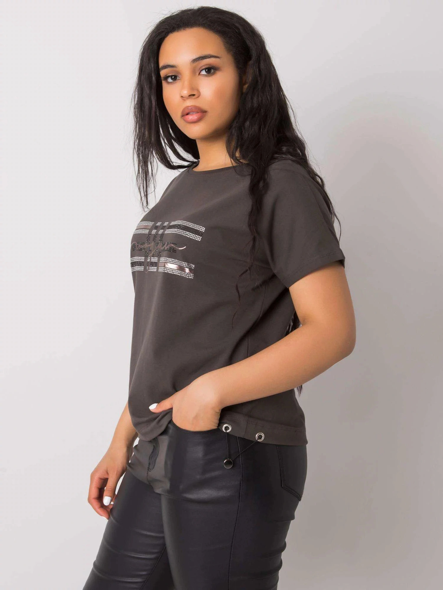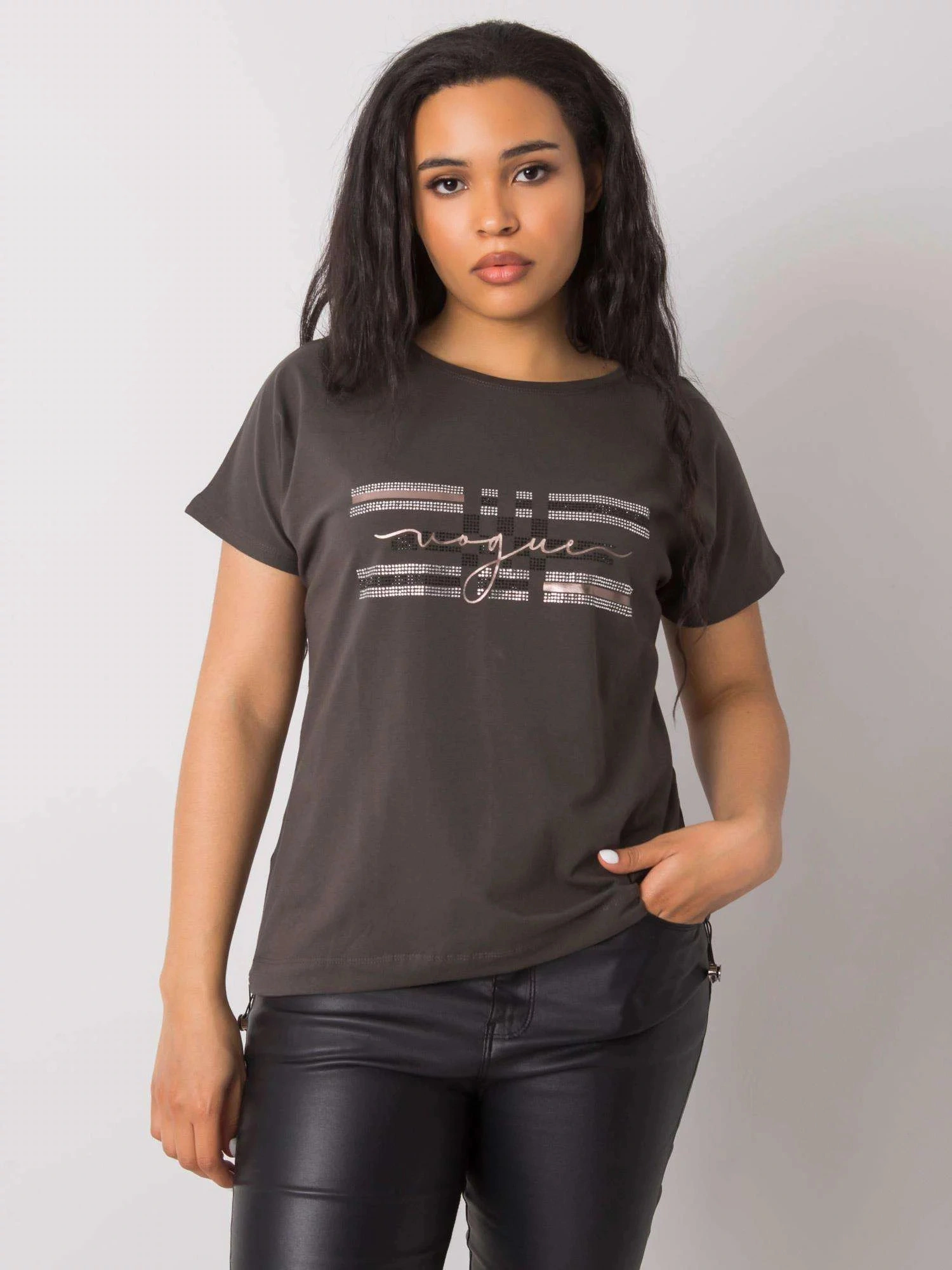 Tmavě khaki plus size halenka s ozdobnými pruhy.