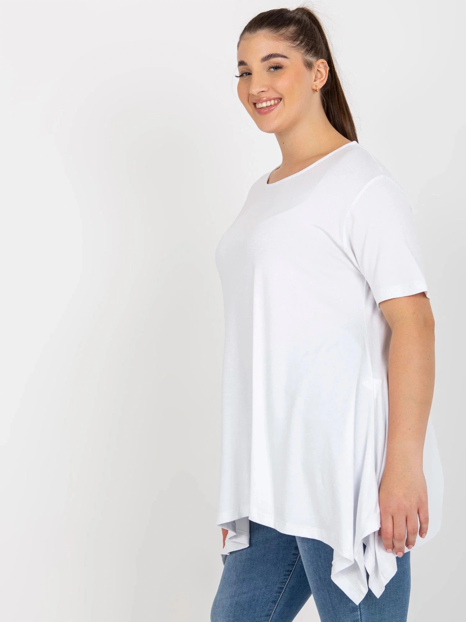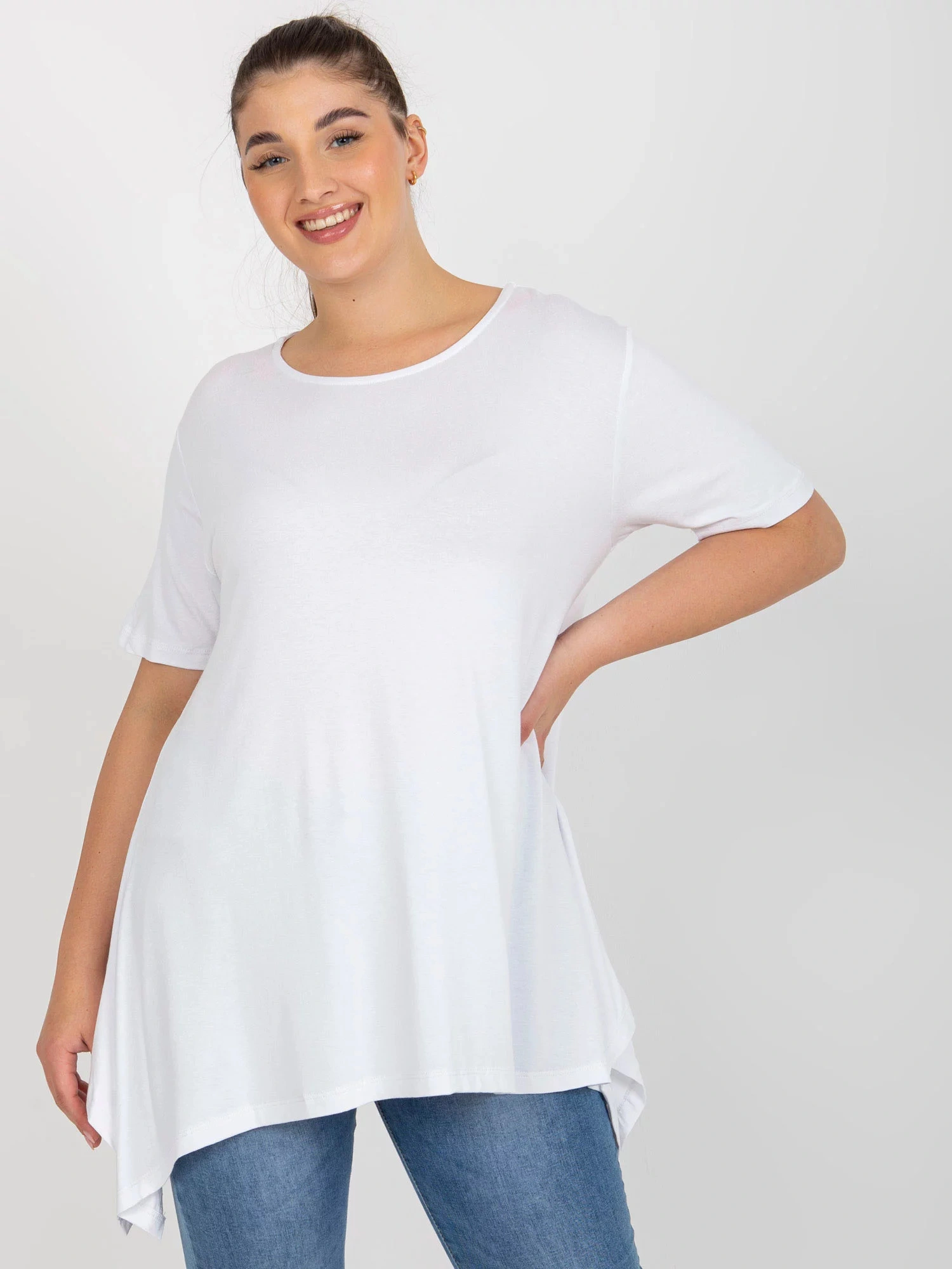 Bílá hladká plus size halenka s kulatým výstřihem .