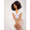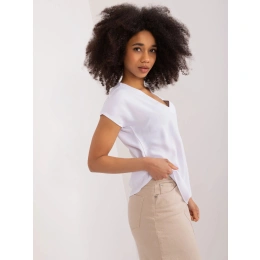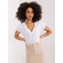 Dámská bílá halenka s prošívaným výstřihem do V. Krátký rukáv.