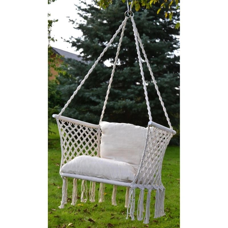 Atraktivní škála barev, speciální ruční výplety a ozdobné střapce ve stylu MAKRAMA dodají kouzlo každému prostředí. Používejte ji po celý rok, na jaře a v létě venku a na podzim a v zimě uvnitř. Relaxace doma nebo venku je s naším ZAVĚŠOVACÍM SEDÁKEM potěšením! Široký sedák a měkký polštář zajistí maximální relaxaci v soukromí vaší zahrady i mimo ni. Systém uchycení umožňuje klidné houpání, které ještě více povzbudí vaše smysly a zklidní nervy.