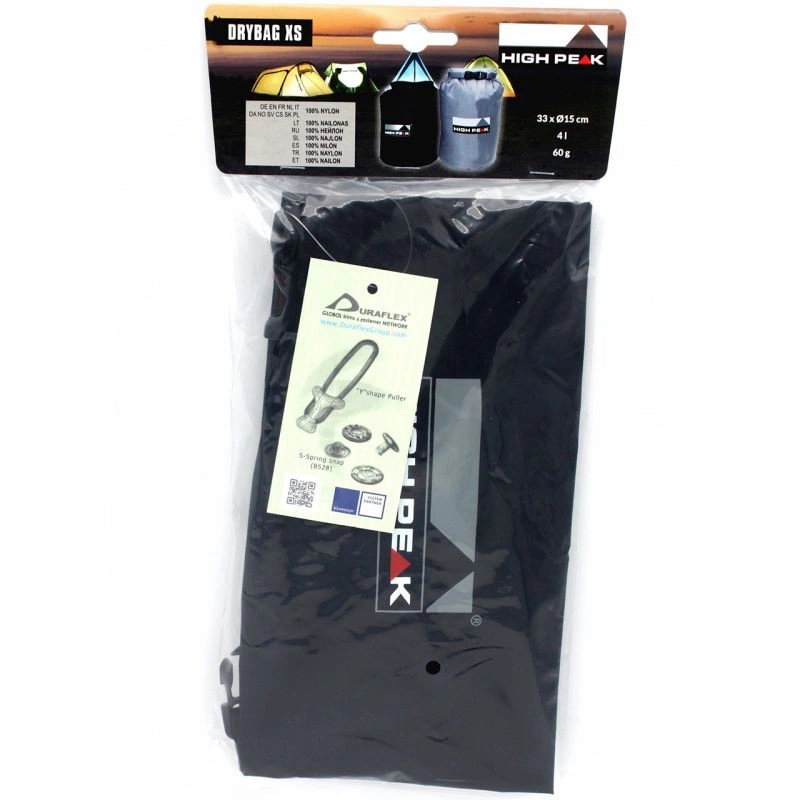 High Peak Drybag 4L XS black 32059 Voděodolný vak High Peak Drybag ochrání vaše vybavení během expedice. Pevný a odolný nylon poskytuje pevnou bariéru proti vodě a nečistotám. Podlepené švy. Snadno čistitelný vak na suché věci s praktickým klipovým uzávěrem. Technické údaje:-objem: 4 l -hmotnost: 60 g-výška: 33 cm-průměr: 15 cm-materiál: 190T nylon.