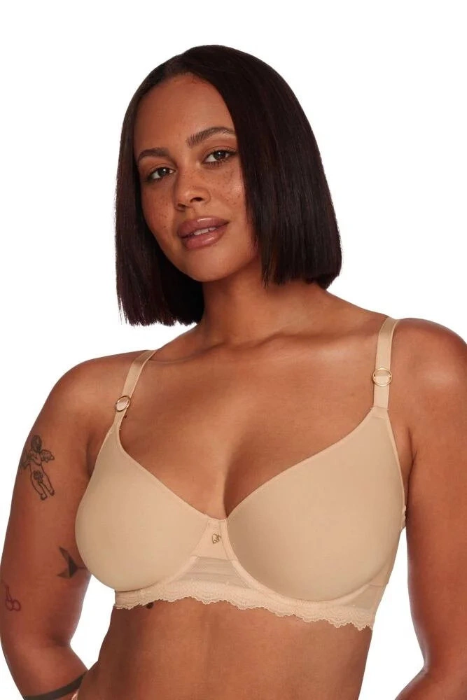 Podprsenka Tess má velice pohodlný střih, neutrální béžovou barvu a košíčky z unikátního prodyšného materiálu typu spacer.Materiálové složení: 84% polyamid, 16% elastan