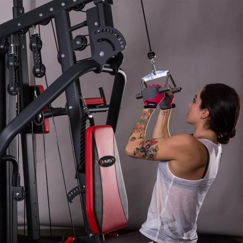 UW05 HMS je dvojitá rukojeť, určená pro trénink na horní a dolní zdvih. Používá se k procvičování zádových svalů, ale osvědčí se i při provádění cviků s polovinou činky ( druhá polovina opřená o podlahu). Její činka dokonale zapadá do středu rukojeti, což umožňuje volně provádět cvik veslování s polovinou činky v pádu na trup.