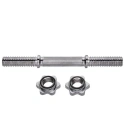 Součástí sady jsou dva šroubové úchyty. Tyto typy úchytů zaručují stabilní polohu závaží na grifu během cvičení. Matice mají ve vnitřní části gumové těsnění, které zabraňuje uvolnění zátěže. Část grifu je opatřena závitem, což umožňuje rychlé a bezpečné umístění zátěže. Grif je vyroben z pevné ocelové tyče, která prošla procesem kalení. Průměr grifu 30 milimetrů zajišťuje velkou pevnost a pohodlí při cvičení. Použitý proces chromování grifu je zárukou, že si grif zachová svůj vzhled po velmi dlouhou dobu používání, a je nejlepší ochranou proti korozi.