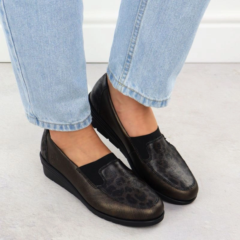 Popis Hnědá kožená dámská obuv na platformě Rieker L5351-90