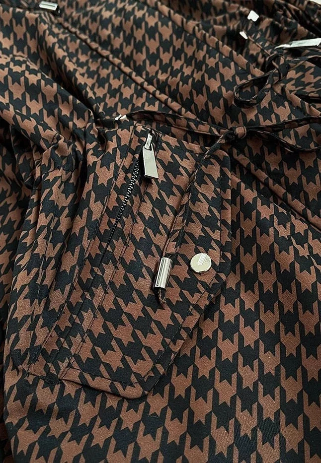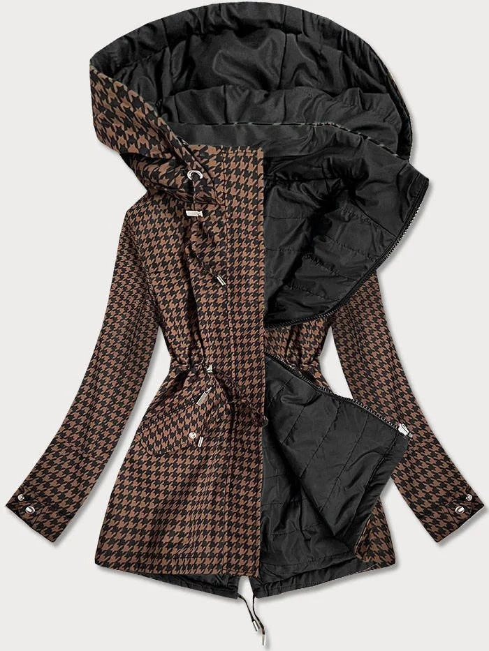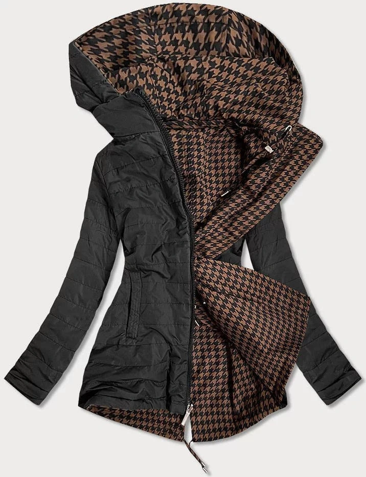 Oboustranná bunda s kapucí, s pepitovým vzorem.
