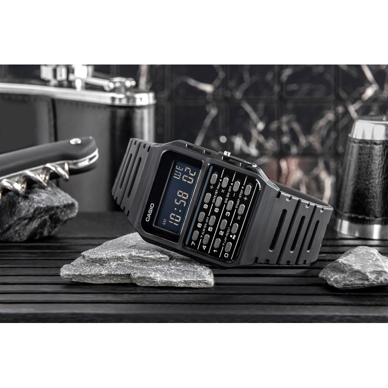 HodinkyCASIO CA-53W jsou ikonické hodinky, které kombinují retro design s funkčností a jsou tak ideální volbou pro ty, kteří si cení praktičnosti. 8místná vestavěnákalkulačka v hodinkách Casio CA-53W je ideálním řešením pro ty, kteří si cení rychlosti a pohodlí při každodenních výpočtech. Díky funkcím sčítání, odčítání, násobení a dělení můžete kdykoli provádět základní matematické operace, aniž byste museli sahat po telefonu nebo klasické kalkulačce. Je to ideální nástroj pro žáky, studenty, podnikatele a všechny, kteří denně pracují s čísly. Intuitivní tlačítka zajišťují snadné ovládání a jejich rozložení umožňuje rychlé zadávání dat.