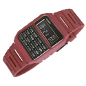 Ciferník hodinek je přehledný, jednoduchý a praktický, což dokonale ladí s ikonickým minimalistickým designem 80. let. intuitivní tlačítka zajišťují snadné ovládání a jejich uspořádání umožňuje rychlé zadávání údajů. ať už počítáte výdaje, převádíte měny nebo provádíte rychlé výpočty v práci, tyto hodinky s kalkulačkou máte vždy po ruce, připravené k akci. v horní části displeje se zobrazují další funkce (den v týdnu, budík, stopky), zatímco ve spodní části se zobrazuje aktuální čas ve 12/24hodinovém formátu.