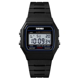 Elegantní černý doplněk, který kombinuje stylový minimalismus s funkčností. Díky LED podsvícení, budíku a stopkám se skvěle hodí pro váš každodenní rytmus a nenápadně vám pomůže zorganizovat den. Lehký polyuretanový řemínek pohodlně sedí na zápěstí, takže je praktický a stylový.