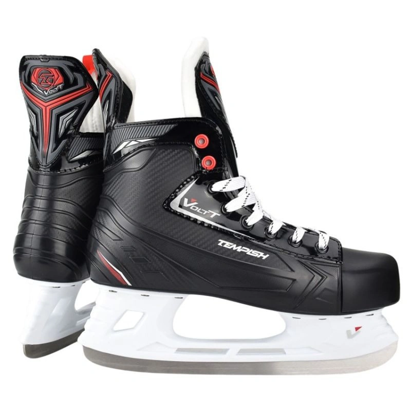 Łyżwy hokejowe TEMPISH VOLT-T Junior Komfort i trwałość dla graczy amatorskich Łyżwy hokejowe TEMPISH VOLT-T to idealny wybór dla amatorów poszukujących wygodnych i niezawodnych łyżew do rekreacyjnej gry i treningów. Dzięki trwałej konstrukcji, anatomicznemu dopasowaniu i solidnym materiałom, model VOLT-T zapewnia odpowiednie wsparcie i komfort nawet podczas dłuższych sesji na lodzie. Główne cechy: Trwała i stabilna konstrukcja: Cholewka wykonana z wytrzymałego kompozytu termoplastycznego Jednoczęściowa skorupa zwiększająca stabilność stopy Anatomiczny język z PVC i 9 mm warstwą filcu chroni przed uciskiem Komfort użytkowania: Wnętrze wyściełane miękkim nylonem CAMBRA Anatomicznie profilowana wkładka zapewniająca wygodne dopasowanie Piankowa wyściółka w okolicach kostki – większa ochrona i komfort Pewność i kontrola na lodzie: Ostrze TEMPISH 7000 ze stali nierdzewnej – trwałe i odporne na zużycie Klasyczny system sznurowania – łatwe dopasowanie do st