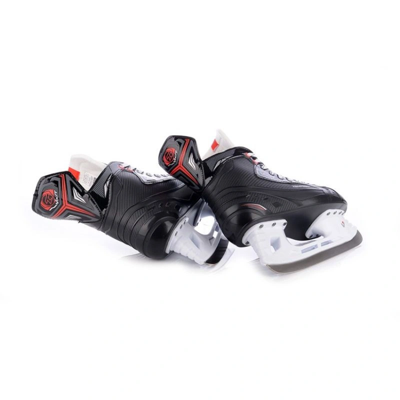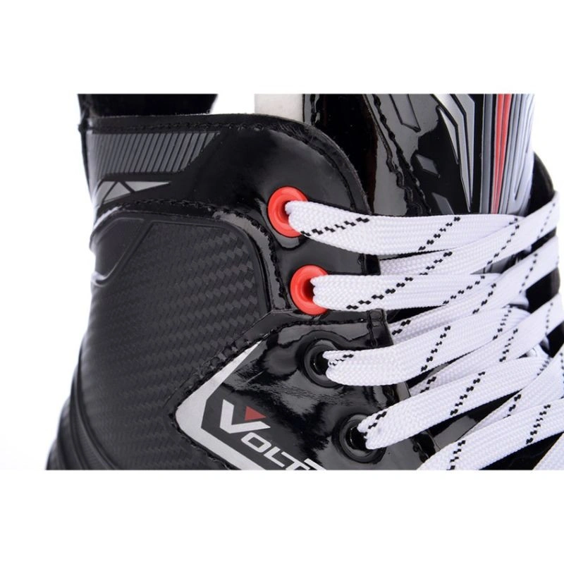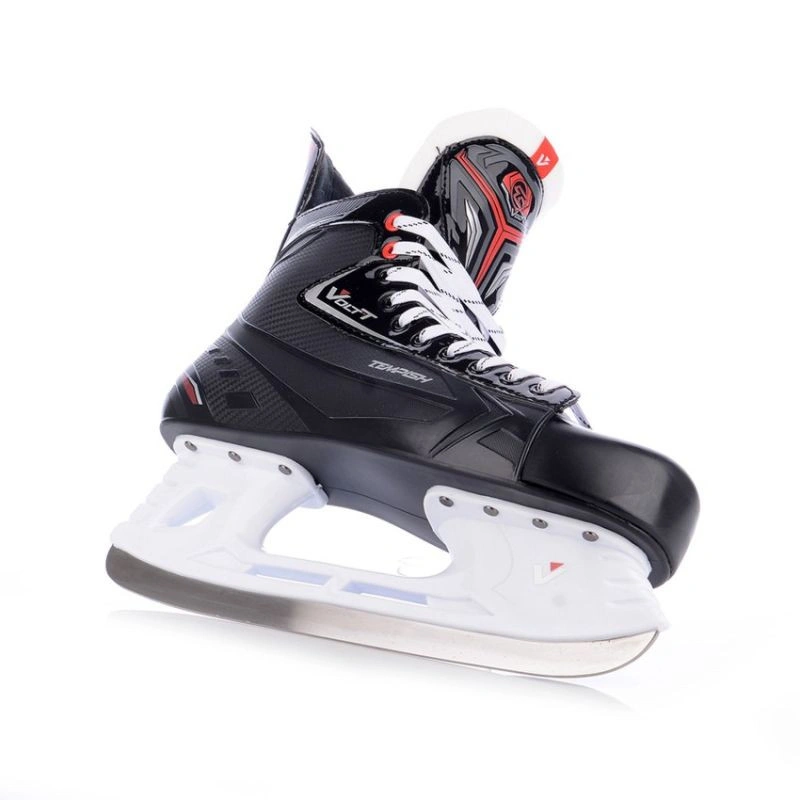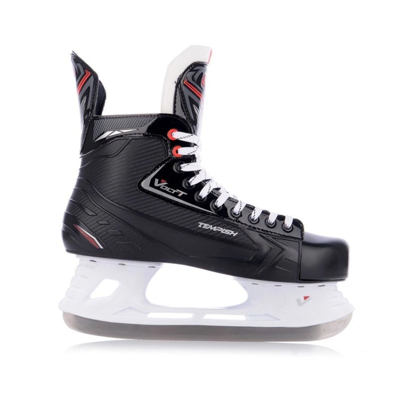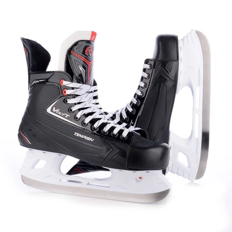 Łyżwy hokejowe TEMPISH Volt-T Max Niezawodność, komfort i trwałość dla amatorów hokeja Łyżwy hokejowe TEMPISH Volt-T Max zostały stworzone z myślą o amatorach, którzy poszukują wygodnych i solidnych łyżew do regularnej gry i treningów. Dzięki wytrzymałym materiałom i anatomicznemu dopasowaniu zapewniają stabilność, ochronę oraz komfort nawet podczas długiego użytkowania. Głowne cechy: Wytrzymała konstrukcja: Cholewka wykonana z kompozytu termoplastycznego zapewnia długą żywotność i odporność na intensywne użytkowanie. Komfort i dopasowanie: Podszewka z nylonu CAMBRA oraz anatomicznie profilowana wkładka i wyściółka z pianki w okolicy kostki gwarantują wygodę i wsparcie. Ochrona i stabilność: Język z PVC i 9 mm filcu chroni przed uciskiem i otarciami, a anatomiczna skorupa wspiera kostkę i ścięgno Achillesa. Wysoka jakość jazdy: Ostrze TEMPISH 7000 ze stali powlekanejj zapewnia trwałość, płynny ślizg i doskonałą kontrolę. Łyżwy hokejowe TEMPI