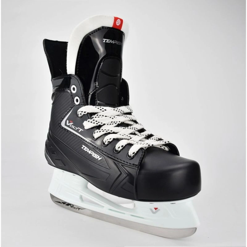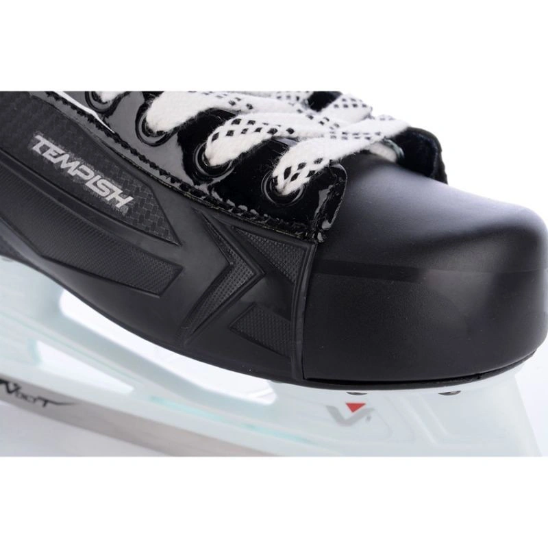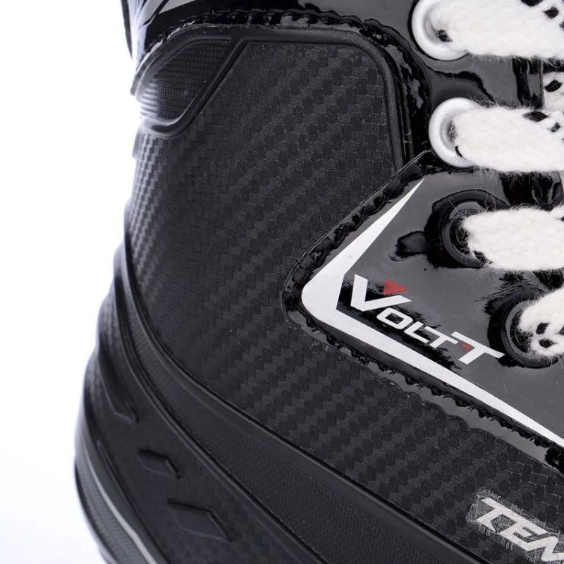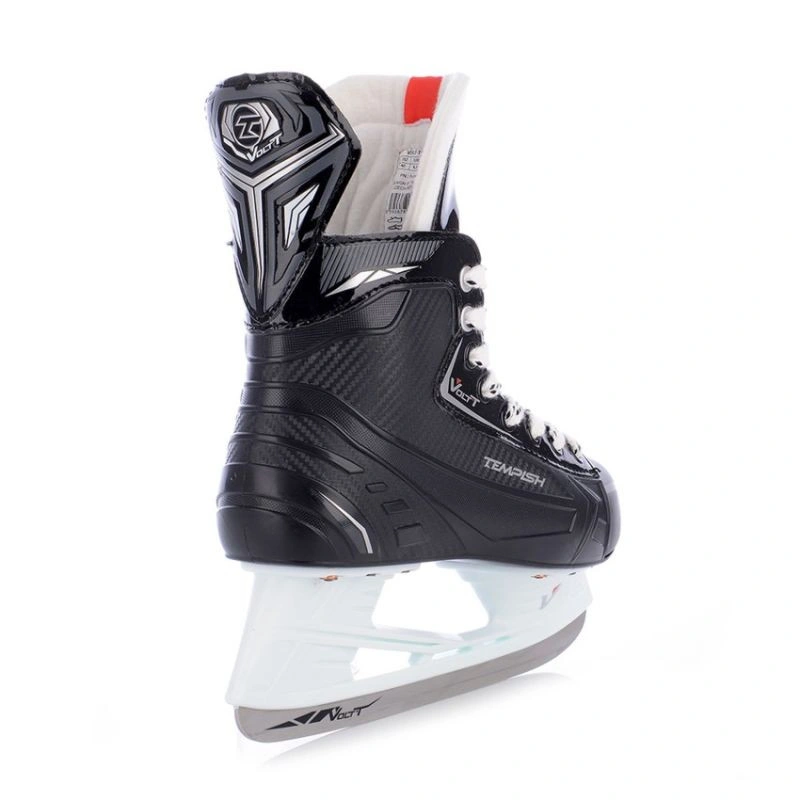 Łyżwy hokejowe TEMPISH VOLT-T PRO Wytrzymałość, precyzja i komfort dla wymagających graczy Łyżwy TEMPISH VOLT-T PRO zostały stworzone z myślą o zaawansowanych hokeistach w sporcie amatorskim, którzy regularnie trenują i biorą udział w rozgrywkach. Dzięki solidnej konstrukcji, anatomicznemu dopasowaniu i zastosowaniu materiałów najwyższej jakości, model ten oferuje niezawodność i wydajność niezbędną podczas intensywnej gry. Główne cechy Wytrzymała konstrukcja kompozytowa: Zewnętrzna skorupa buta wykonana z termoplastycznego kompozytu zapewnia doskonałą stabilność i odporność na uszkodzenia – nawet przy częstym użytkowaniu. Anatomiczne dopasowanie i ochrona: Wnętrze wyłożone szczotkowanym nylonem CAMBRA z anatomiczną wkładką oraz piankowymi panelami wokół kostki gwarantuje komfort, wsparcie i skuteczną amortyzację wstrząsów. Wzmocniony, dwuczęściowy język: Z wbudowanymi wkładkami ochronnymi z tworzywa – chroni stopę przed uderzeniami kijem czy k