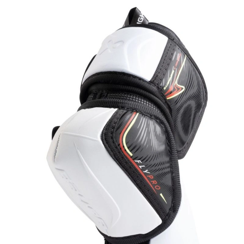 nałokietniki hokejowe Bauer Flypro Junior Nałokietniki hokejowe Bauer Flypro Jr to profesjonalny wybór dla najmłodszych graczy oczekujących maksymalnej ochrony przy minimalnej wadze. Dzięki zwężanemu kształtowi, lekkiej konstrukcji i doskonałemu dopasowaniu zapewniają pełną swobodę i bezpieczeństwo podczas gry na najwyższych obrotach. Główne cechy: Unikalny design: Nałokietniki VAPOR FLYPRO mają zwężany kształt, który sprawia, że wyglądasz bardziej opływowo, doskonale chronią przed przypadkowymi cięciami lub uderzeniami. Pianka HYPERLITE zmniejsza wagę tych ochraniaczy, zapewniając jednocześnie solidną ochronę. Dodatkowo głęboko dopasowana nakładka na łokieć sprawia, że czujesz się, jakby były one częścią Twojego ciała. Wysoka jakość materiału: Głębiej dopasowana nakładka na łokieć niż w poprzednim modelu oraz 360-stopniowe owinięcie przedramienia zapewniają wygodne i dokładne dopasowanie, które utrzymuje ochraniacze na miejscu. W przypadku młodszy