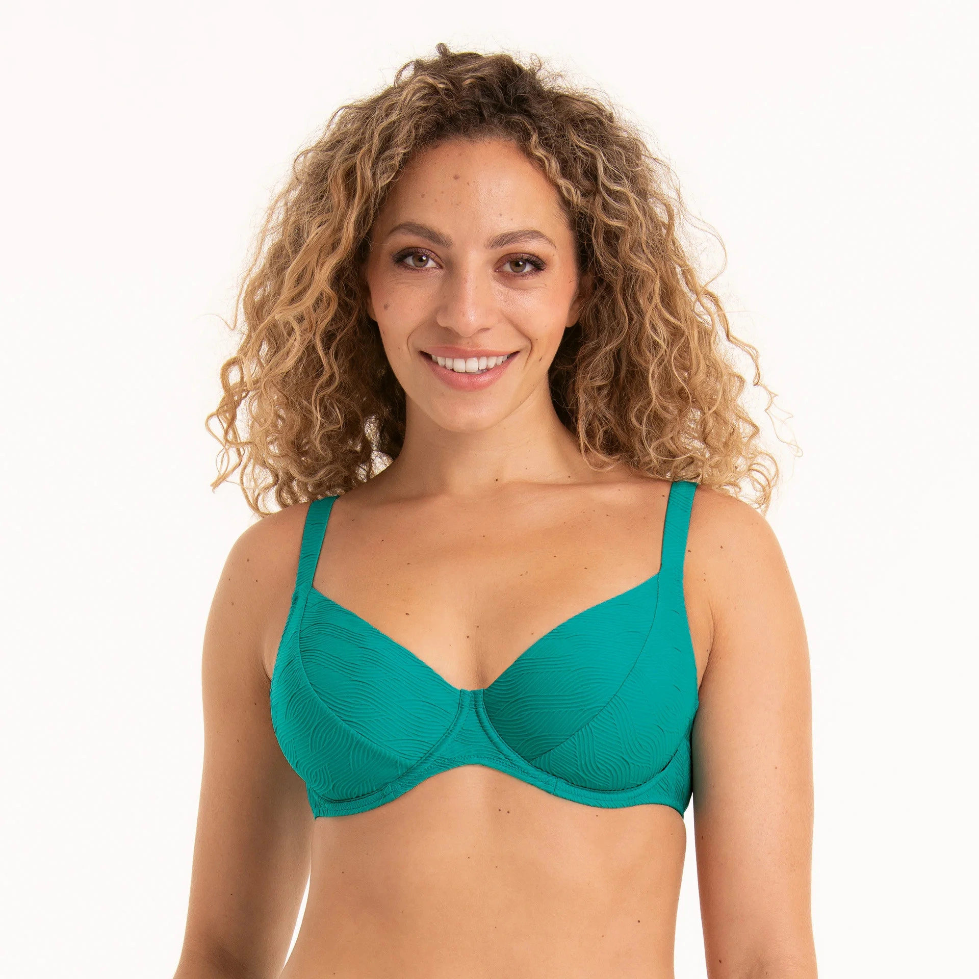 Dámský vrchní díl luxusních plavek, košíčky podšité, nevyztužené, s kosticemi.
