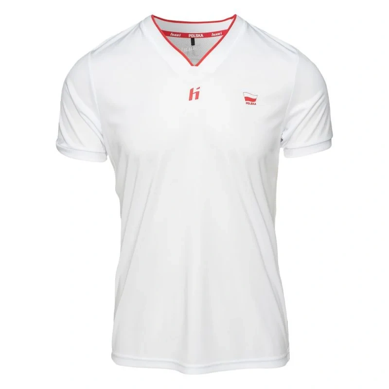 Pánské tričko ALUMNI POLAND značky Huari má rovný střih s výstřihem do V. Je vyrobeno ze syntetického materiálu, jehož výhodou je odvod potu od pokožky. Zadní strana trička má strukturu tvořenou tisíci malých otvorů, které pomáhají transportovat vlhkost ven. Celek je doplněn nápisem Poland a polskou vlajkou.