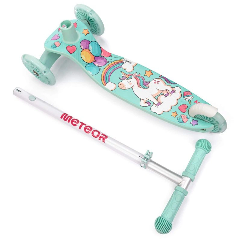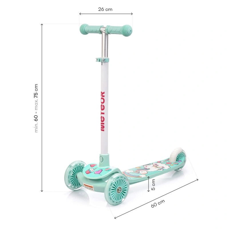 Ergonomické přizpůsobení - koloběžka Meteor Funny je vybavena čtyřpolohovým nastavením výšky řídítek, což znamená, že vozidlo "roste" spolu s vaším dítětem a bude mu sloužit po mnoho let. Díky lehké konstrukci se koloběžka snadno přepravuje, například při návratu z hřiště nebo procházky, když už vaše dítě nechce jezdit nebo se raději vrací pěšky.