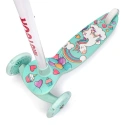 Bezpečná jízda - tříkolová konstrukce s velkým rozchodem předních kol usnadňuje udržování rovnováhy a učení se jízdě. Nášlapná brzda na zadním kole umožňuje dítěti koloběžku rychle a účinně zastavit a svítící kolečka zlepšují viditelnost na silnici, čímž maximalizují úroveň bezpečnosti.