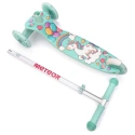 Řídítka ve tvaru T s gumovými rukojeťmi zajišťují kontrolu nad vozidlem a pohodlný úchop. Měkký povrch řídítek chrání před otisky prstů a odřeninami rukou. Řídítka lze snadno odejmout stisknutím tlačítka, díky čemuž je koloběžka kompaktní a snadno se přepravuje. Její výšku lze nastavit ve 4 výškách: 60/65/70/75 cm, což umožňuje snadné přizpůsobení koloběžky výšce dítěte.