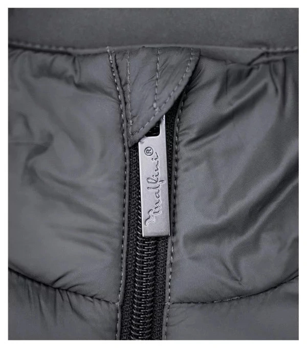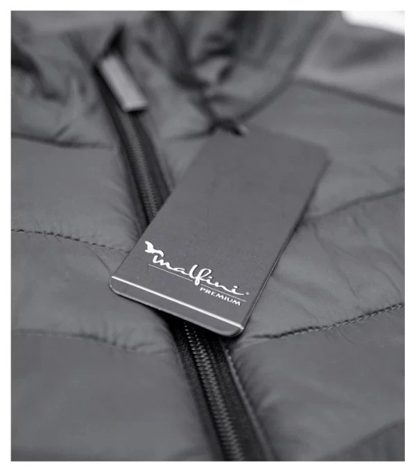 kombinace prošívaného a softshellového materiálu střih tvarovaný bočními díly celopropínací spirálový zip s krytkou brady boční kapsy se spirálovým zipem vnitřní náprsní kapsa na zip tvarovaný a mírně prodloužený zadní díl vstup pro branding v podšívce zadního dílu