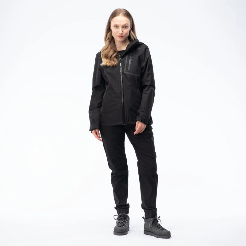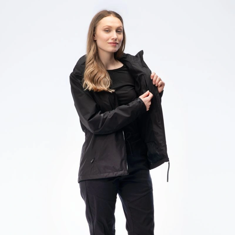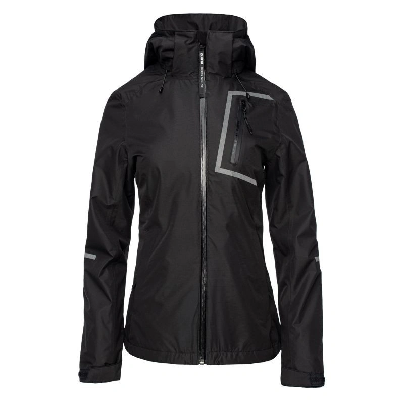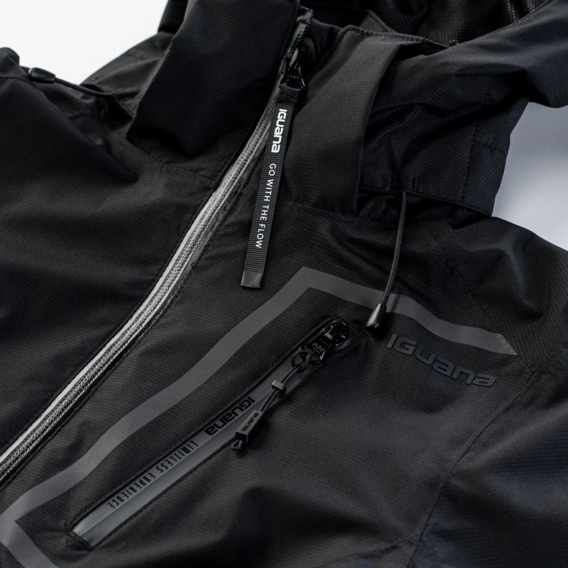 Bunda HORNEN W od značky Iguana je vybavena membránou ActivGuard Plus® s voděodolností 10 000 mm H2O a prodyšností 5 000 g/m²/24 h. Tato membrána chrání před mírným deštěm a zároveň zachovává dobrou úroveň prodyšnosti. Povrchová úprava DWR na bundě zvyšuje její nepromokavost. Vysoký límec a odnímatelná nastavitelná kapuce vás ochrání před větrem a deštěm. Reflexní prvky v podobě loga zvyšují bezpečnost. Bunda má také stahovací šňůrku v pase a nastavitelné manžety pro lepší přizpůsobení.