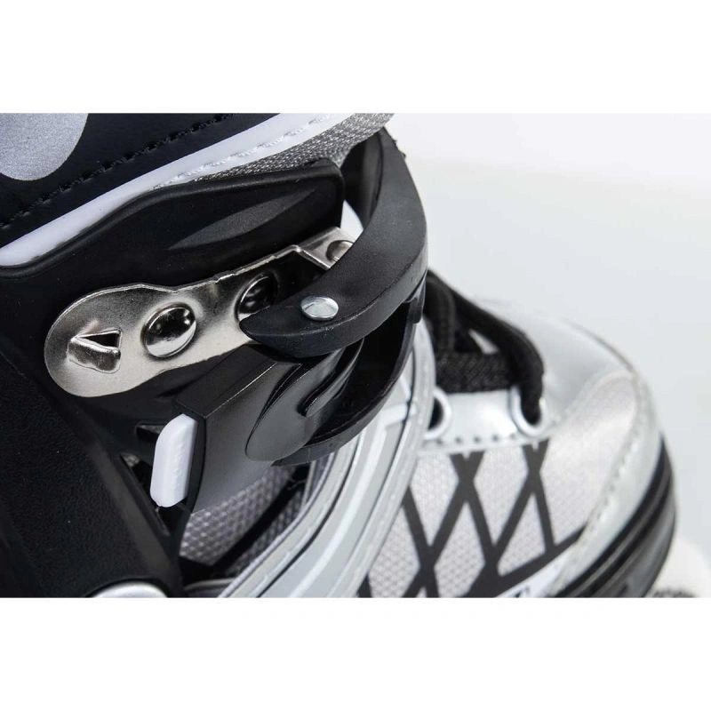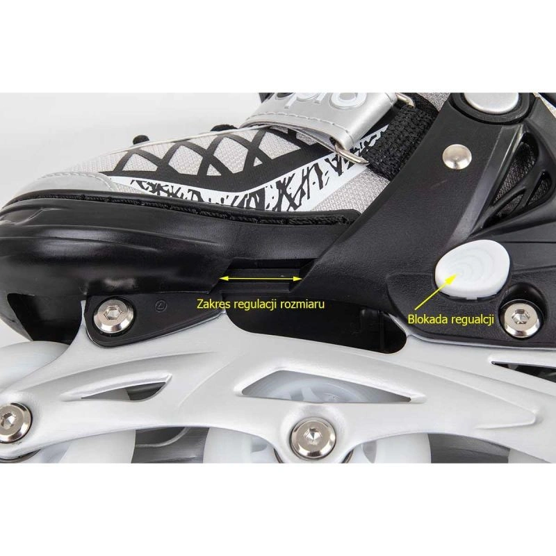 Jsou vybavenylehkou a pevnou hliníkovou skluznicí, brzdou, mléčnými kolečky o průměru 70 mm s bílýmiLED světly, třemi nastavitelnými úchyty a postupným nastavováním velikosti. Kolečka a ložiska třídy ABEC7 umožňují nižší valivý odpor a lze je používat na dlouhé vzdálenosti i při rekreační jízdě. Vyztužený svršek s voděodolnou vrstvou, široký pohodlný střih a měkké polstrování kolem kotníku výrazně zvyšují komfort používání při jízdě. Brusle jsou vyrobeny z odolného kovu odolného proti poškození a korozi.
