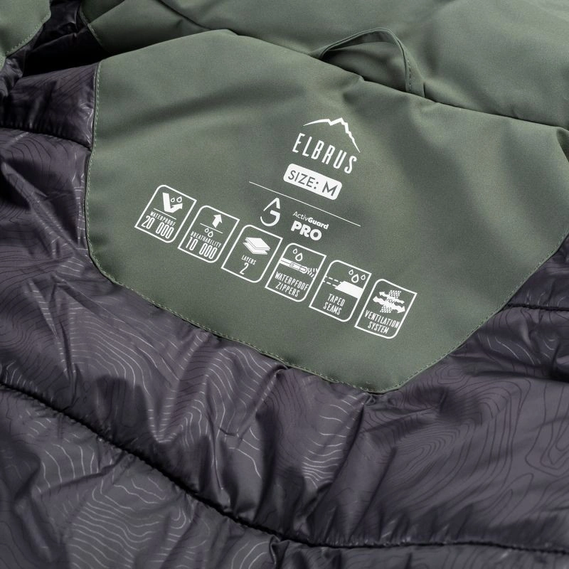 Pánská zateplená bundaDILOX značky Elbrus má membránu ActivGuard Pro® s voděodolností 20 000 mm H2O a prodyšností 10 000 g/m²/24h, takže získáte dostatečnou ochranu při proměnlivém počasí. Vnější materiál má díky podlepeným švům a povrchové úpravě DWR zvýšenou nepromokavost. Syntetická výplň i při srážkách zajistí dostatečný tepelný komfort. Model DILOX má odepínací nastavitelnou kapuci a stahovací šňůrky v pase, takže si bundu můžete přizpůsobit své postavě. Kromě toho má bunda dvě boční kapsy a dvě kapsy na trupu. Do vnitřní kapsy na zip můžete bezpečně uložit peněženku, telefon.