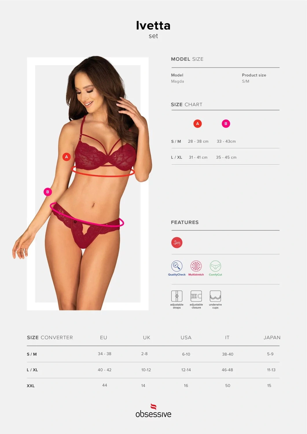 Dnes večer se představíte ve zcela jedinečném stylu! Svého muže překvapíte zdánlivě klasickým spodním prádlem... Ivetta zvýrazní vaše prsa i záda. Kalhotky z elastické krajky zdůrazní boky a hýždě. Víte, že máme vždy to, co potřebujete!